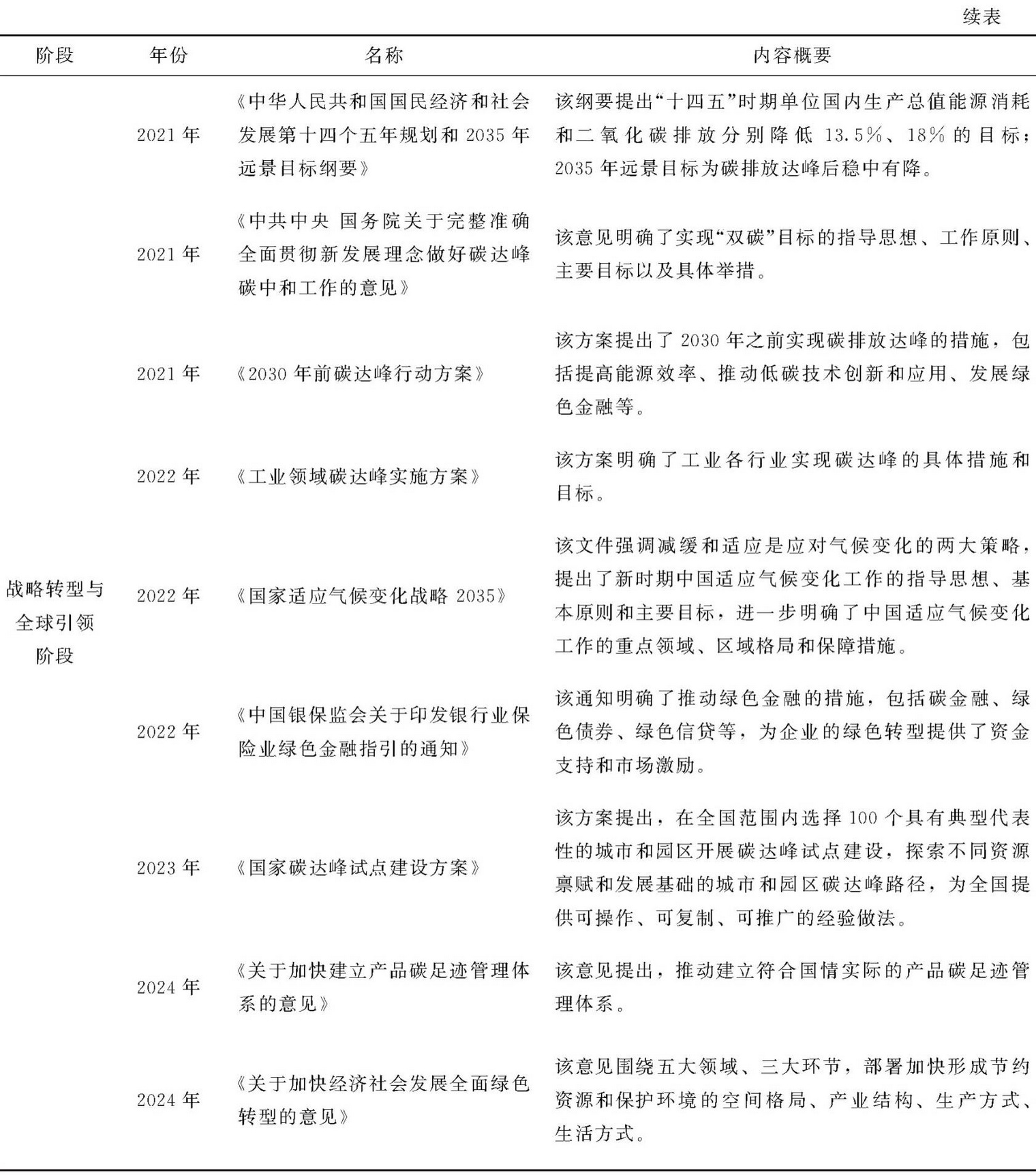上述政策变化展现了中国从注重生态保护到积极推进低碳经济和全球气候治理的转变,并且体现了政策在广度和深度上的扩展。