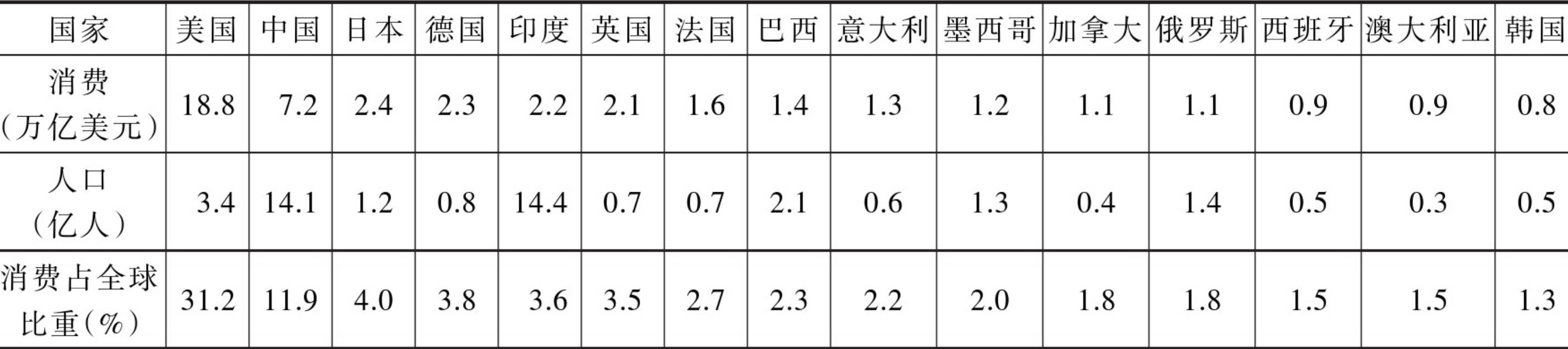 资料来源:各国消费、人口数据,以及全球消费总数据来自世界银行。