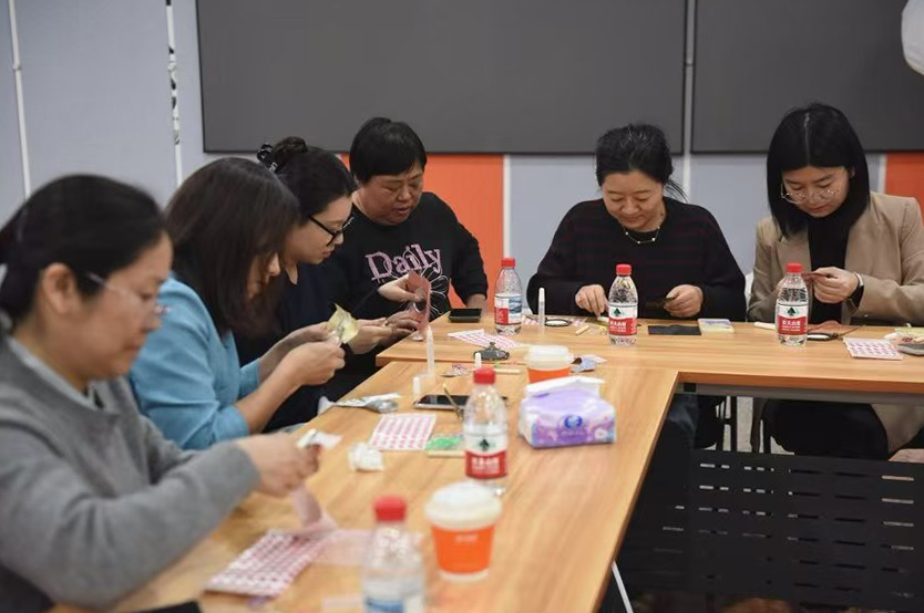 所领导与大家围坐一起,参与非遗宋锦仿古手持镜的DIY制作,体验裁剪、穿针、缝制的创作乐趣,分享技巧、交流体会,现场氛围温馨而热烈。此次活动不仅让女职工们在繁忙工作之余放松了身心、陶冶了情操,更让大家在亲手制作精美仿古手持镜的过程中,近距离触摸作为世界级非物质文化遗产的宋锦魅力,感受其博大精深,在传统工艺与现代生活的碰撞融合中,凝聚了巾帼力量,体会了别样乐趣,增强了文化自信,让女职工们在节日里收获了满满的幸福感与归属感。